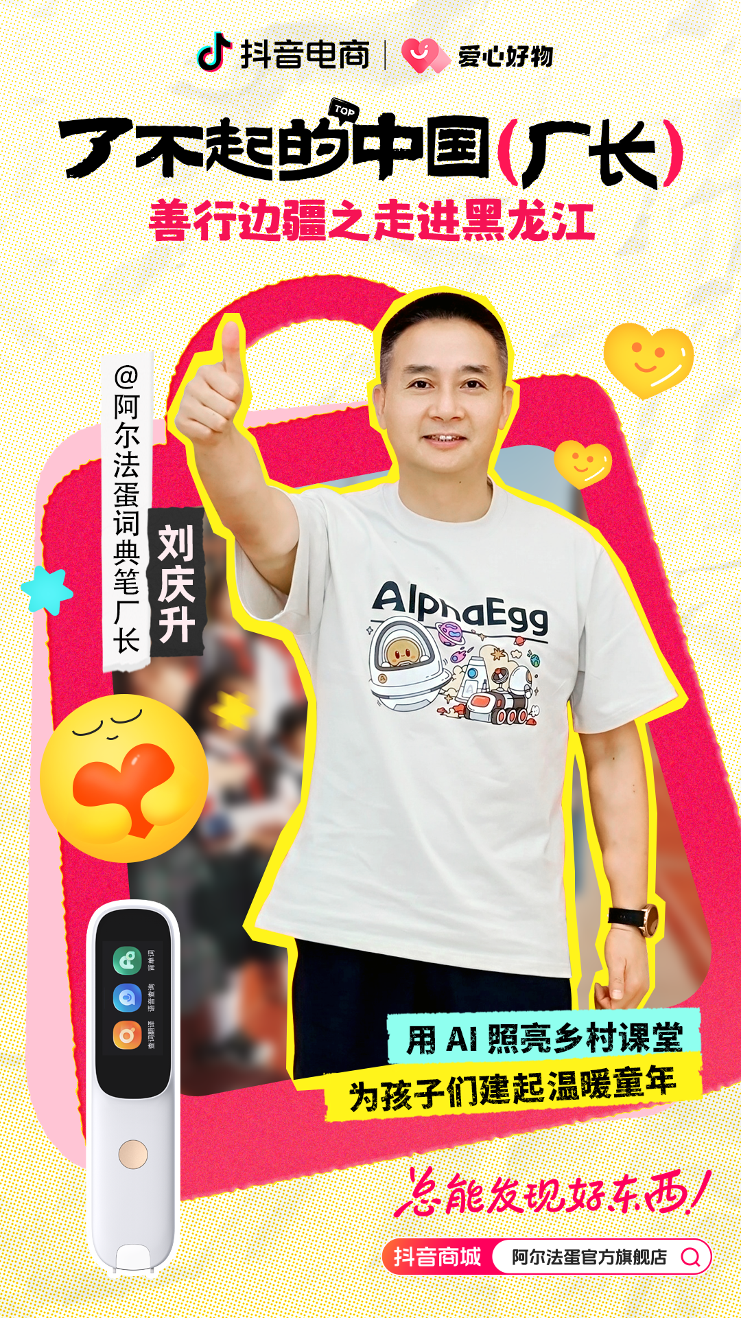从2023年开始,儿童人工智能品牌「阿尔法蛋」就已是抖音电商爱心好物商家,并连续两年参与抖音电商公益项目,为偏远地区孩子们捐赠智能助学设备,开展AI课堂,让他们看到更大的世界。截至2025年10月8日,字节跳动公益平台共有10.5万个商家参与捐赠,为超过150个公益项目筹款1亿元,帮助5.2万青少年健康快乐成长。