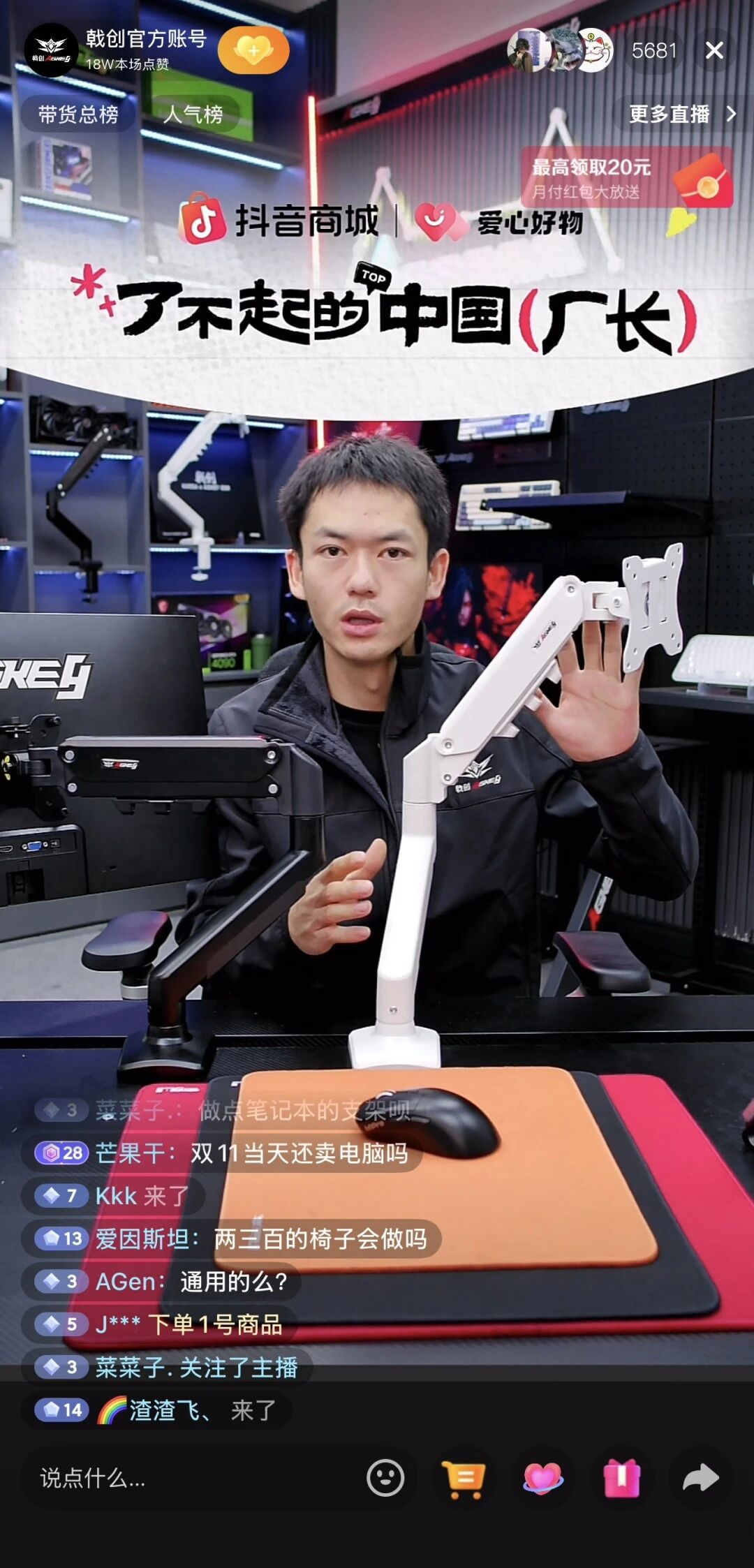 个人账号简介中写着「创业养成系博主」的薛大兵,正是靠着这样的运营支持,从第一次没有脚本的直播,到如今直播间5000多人在线观看,从最开始的代工工厂,到经营成了可以自产自销的品牌「戟创电脑桌」。目前,他的账号@薛大兵 已积累了将近100万粉丝。